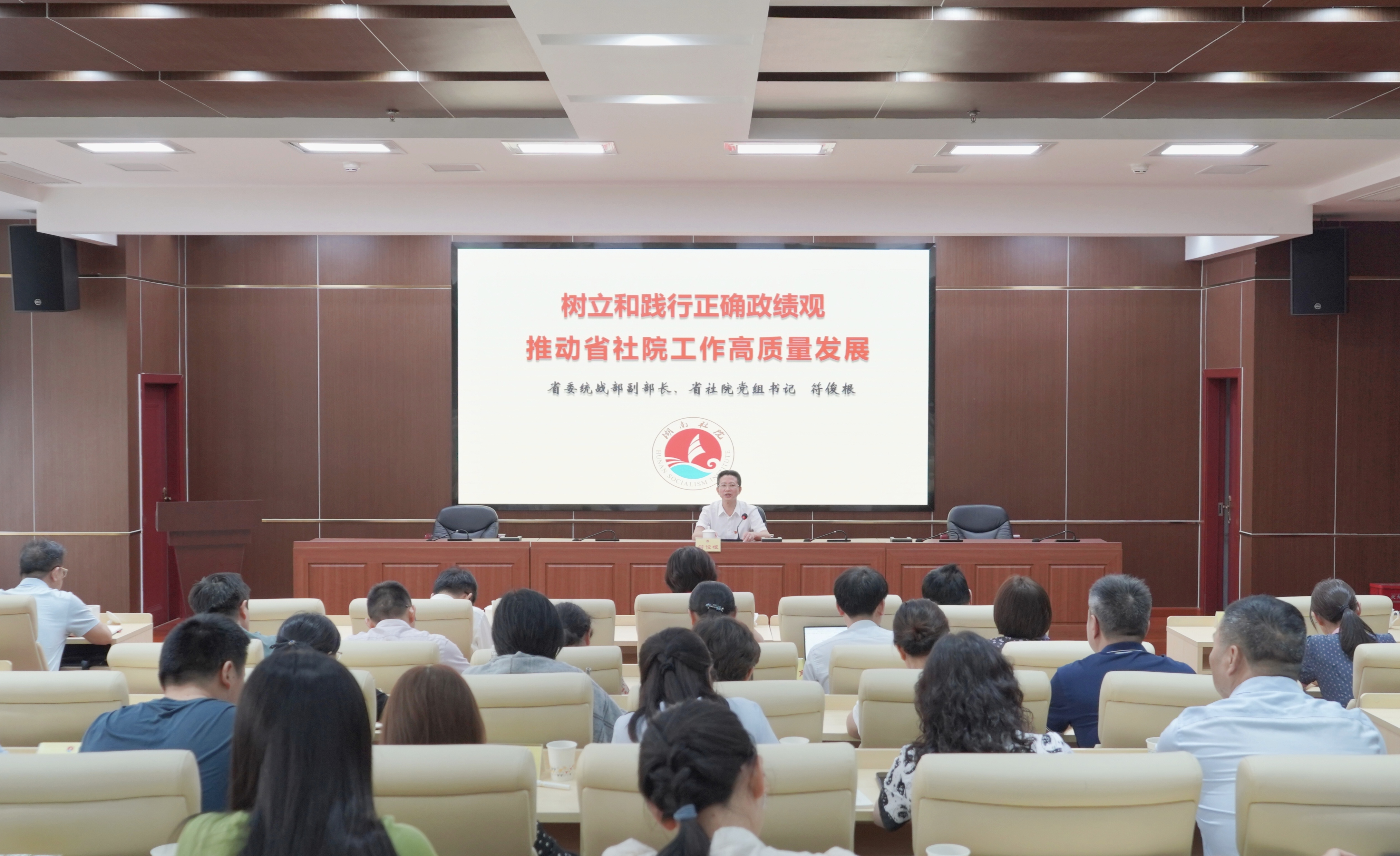 7月17日上午,省委统战部副部长、学院党组书记符俊根以《树立和践行正确政绩观 推动省社院工作高质量发展》为题,为全院党员干部讲授专题党课。