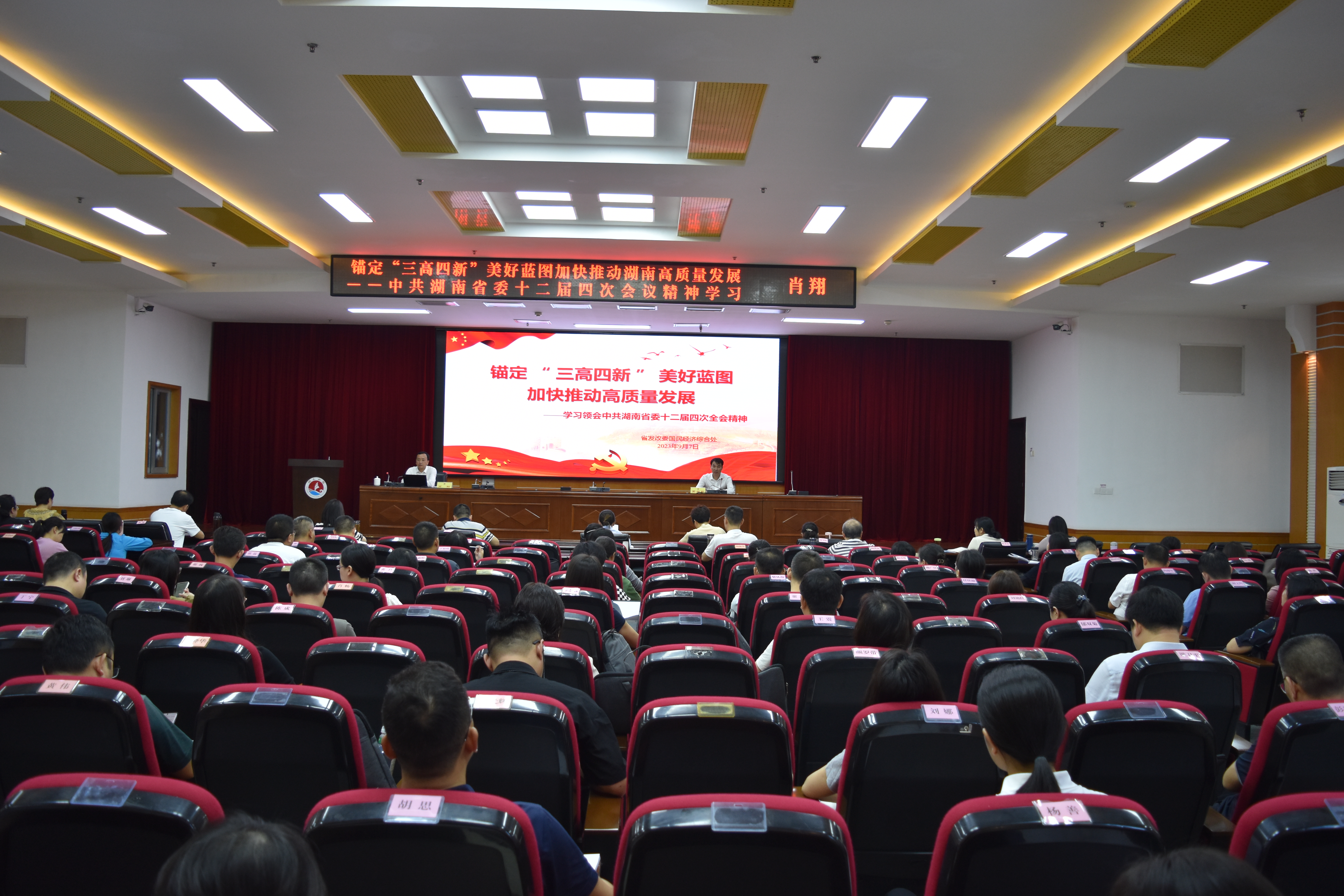 肖翔首先传达学习了《中共湖南省委关于锚定“三高四新”美好蓝图加快推动高质量发展的若干意见》,对会议重要内容进行深入解读。他指出,会议以习近平新时代中国特色社会主义思想为指导,全面贯彻落实习近平总书记关于湖南工作的重要讲话和指示批示精神。他强调,要提高政治站位,切实增强推动高质量发展的责任感使命感紧迫感,坚持对标对表,全面系统领会高质量发展的科学内涵、核心要义和基本要求,牢牢把握高质量发展的正确方向。要以正确政绩观引领推动高质量发展,要坚持质量第一、效益优先的高质量发展之路,着力抓好“三个高地”建设,突出抓好现代产业建设,加快推进科技自立自强,不断深化改革开放。
