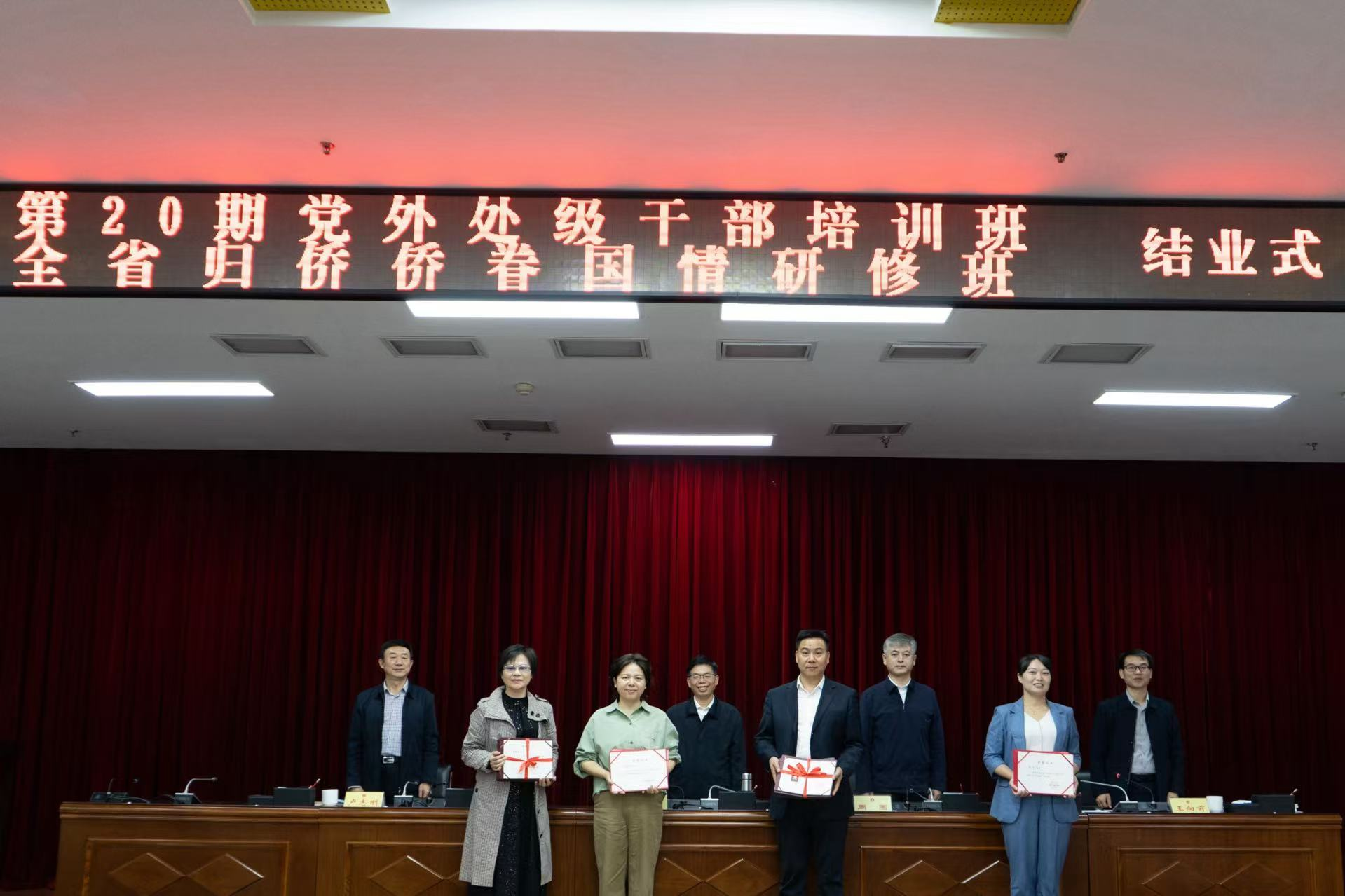 11月4日至11月8日,全省归侨侨眷国情研修班在省社会主义学院成功举办,省委统战部副部长、省侨办主任刘卫兵出席开班式并讲话。省委统战部二级巡视员雷五星、省社会主义学院二级巡视员彭仕敏出席开班式,全省归侨侨眷重点人士共50人参加培训。