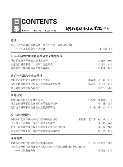 湖南社院学报2022年第1期封面及目录