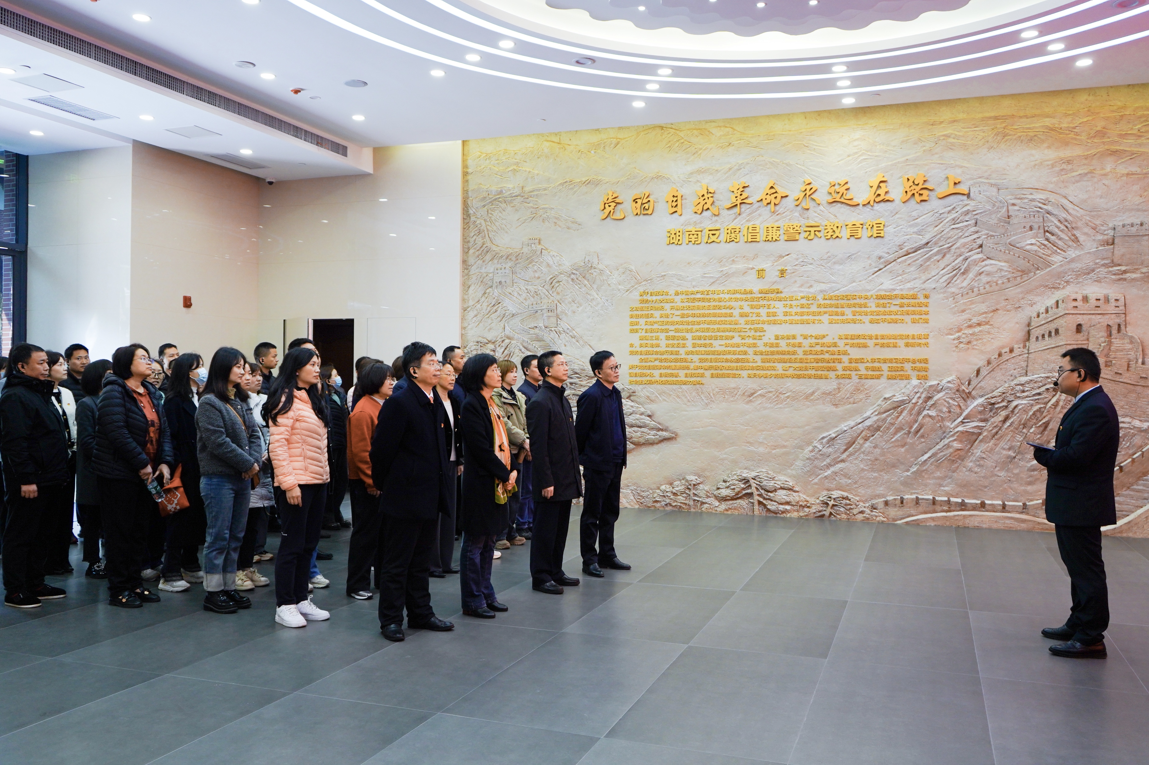 湖南反腐倡廉警示教育馆是全省开展党性党风党纪教育的重要平台,展馆以“党的自我革命永远在路上”为主题,重温习近平总书记关于党的自我革命的重要思想,全面展示了党的十八大以来全省推进自我革命的实践和成效。随着讲解员的讲述,大家通过观展板、看视频、听讲解,深入了解我省全面从严治党的具体实践,深刻剖析近年来我省查处的部分严重违纪违法典型案例,从中汲取教训,做到引以为戒,警钟长鸣。
