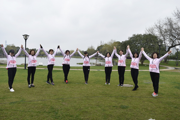 3月7日下午,在副院长、党组成员彭英的带领下,我院共10名女职工参加了活动。橘子洲公园百米高喷广场上,队员们着装统一,热情高涨,只听出发枪声一响,大家昂首挺胸,迈开大步向前行。我院工会主席田宏燕一马当先,科研处处长刘蓉宝、人事处副处长熊萍紧随其后。整个比赛过程中,在橘子洲满目葱茏的绿荫和点缀其中的花朵的伴随下,迎着拂面的春风,大家在一片欢声笑语中你追我赶,互相鼓励,互相帮助,最后都以最佳的状态走完了4.5公里全程。
