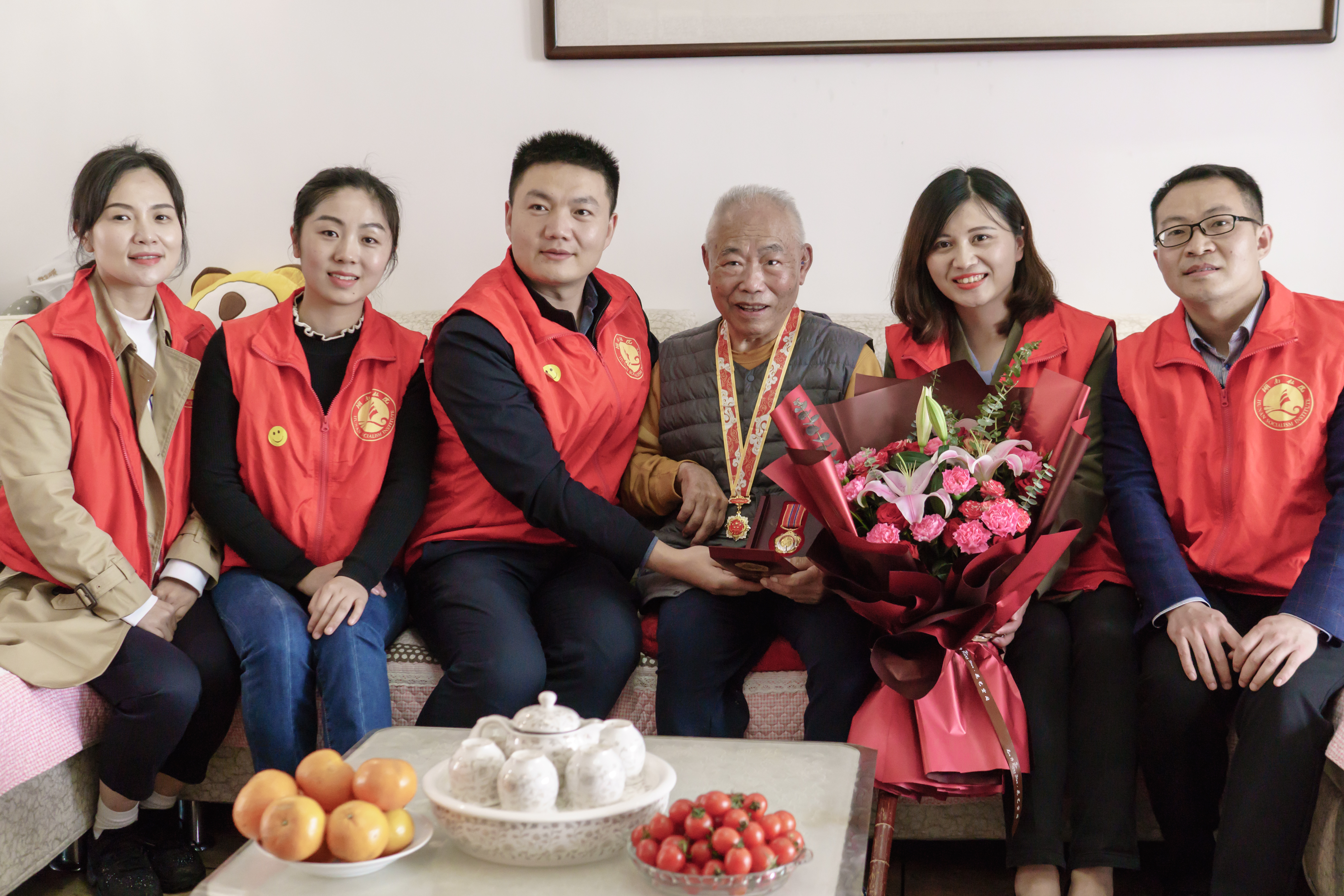 志愿者们带着鲜花,怀着敬仰崇拜的心情,来到了92岁高龄的老战士毕文彩的家中。“我18岁当兵,打过游击战,经历过解放战争和抗美援朝战争……”,“只要心中永葆信仰、信念,无论任何艰难险阻,中华民族都能迈过去!”毕文彩老人耳聪目明、思路清晰,激动地跟大家讲述岁月深处的红色记忆,展示纪念勋章,丝毫看不出来他20多年前就已经中风偏瘫。老人的女儿说,“父亲喜欢读书看报、关心国家大事,战争枪林弹雨的苦难磨练了他的意志,在和平年代见证祖国的发展崛起,对现在来之不易的幸福生活感到特别知足”。