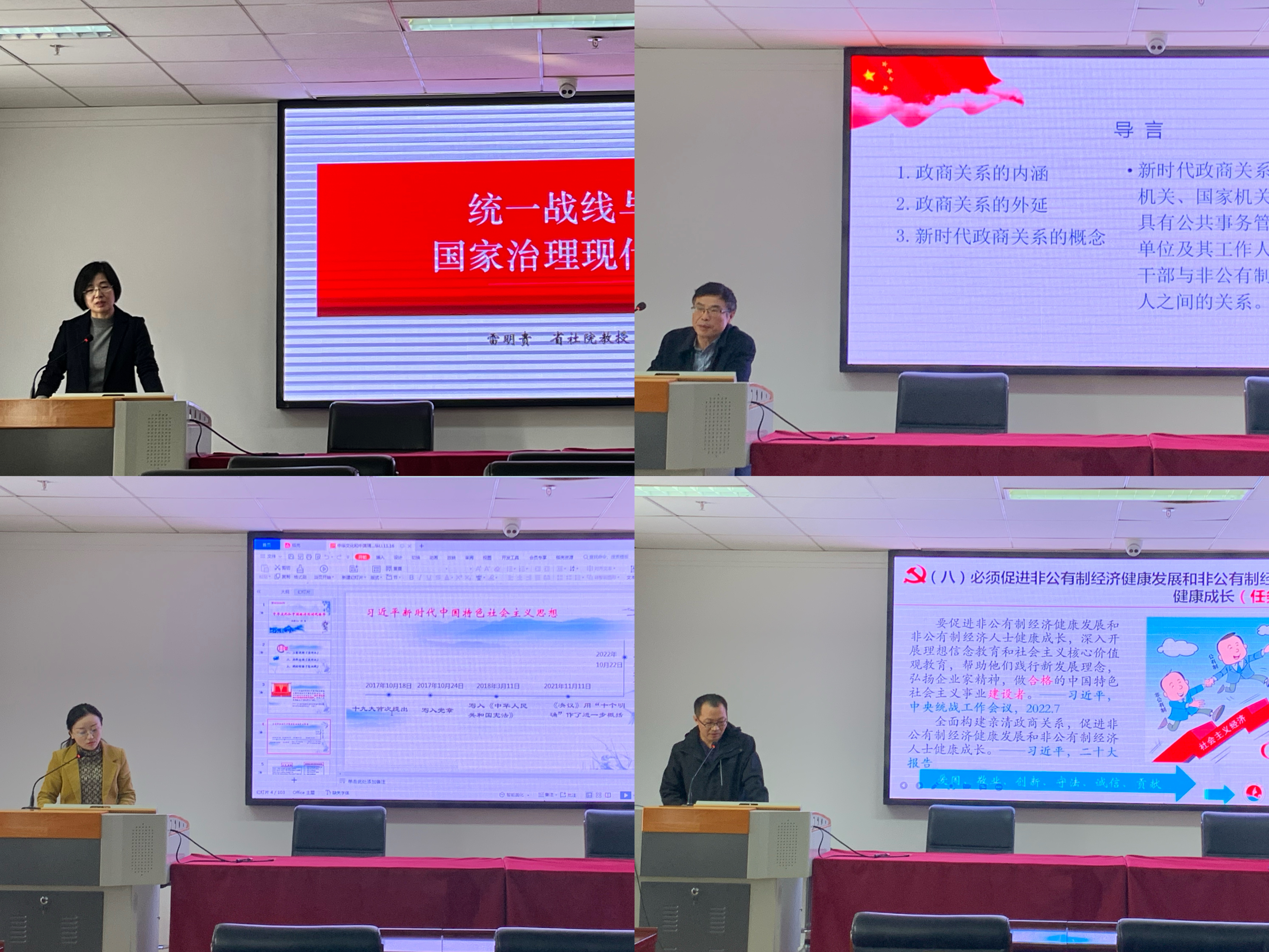 黄自荣指出,把党的二十大精神准确全面落实进原有教学专题教研活动,既是我们政治学院的职责所在,又是创新的举动。及时地把中央重要精神落实到教学实践中去,增强教学的时代性、实效性,让学员感受到共识教育的与时俱进。他肯定了每位老师都下了真功夫,认真研学了二十大报告全文,结合各自的研究领域,深刻理解、领会二十大精神,并生动活泼地融汇贯通到教学专题中去,提高了课程的政治高度,增加了课程的理论深度,必将更好地引导学员高扬中国特色社会主义旗帜,涵养爱国之情、砥砺强国之志、实践报国之行,真正落实和体现社院共识教育立德树人、凝心聚力的使命担当。