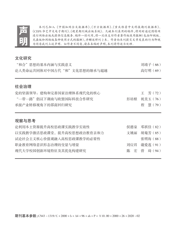 湖南社院学报2020年第2期封面及目录